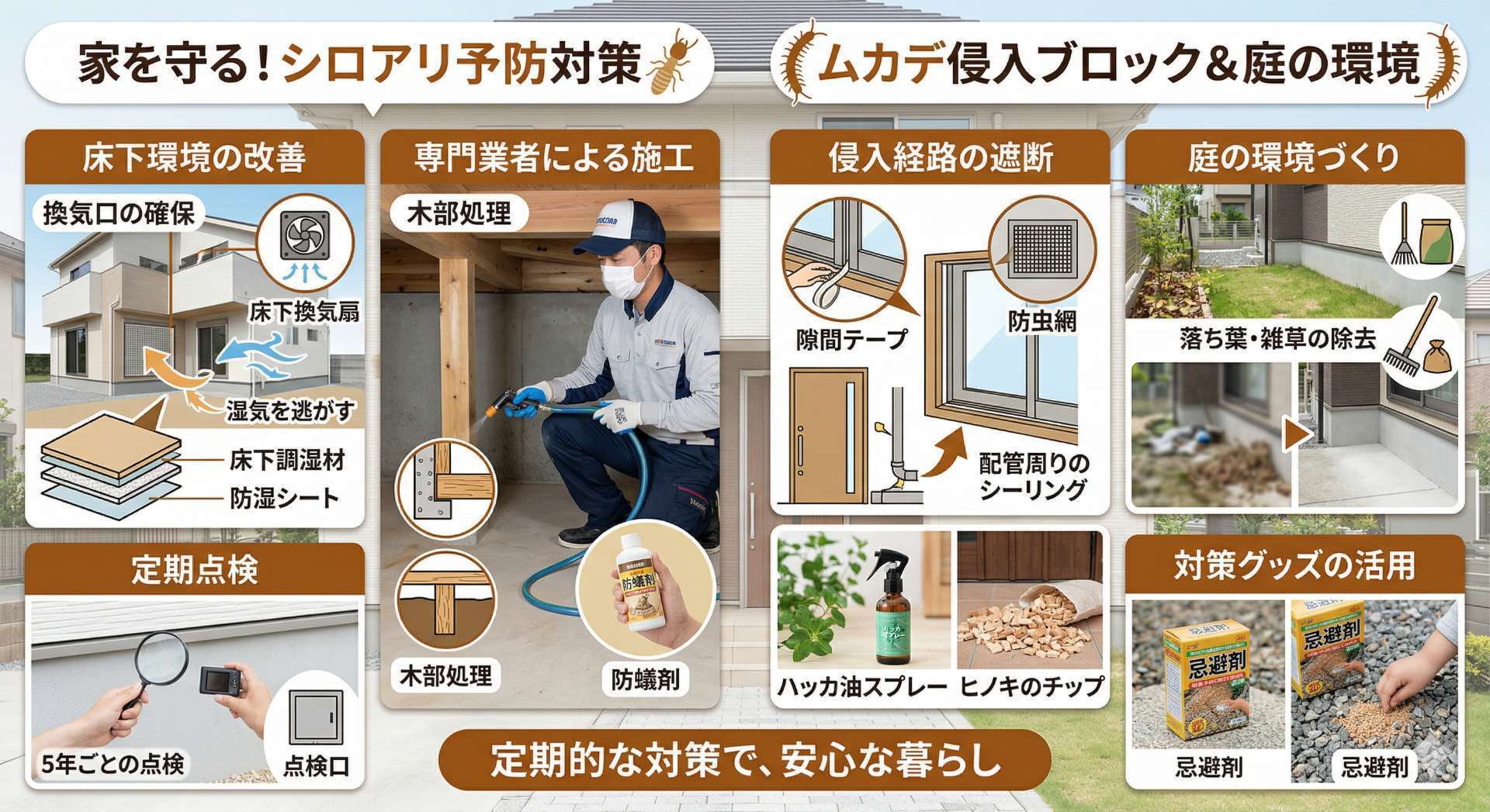 シロアリ・ムカデ撃退のための共通の対策